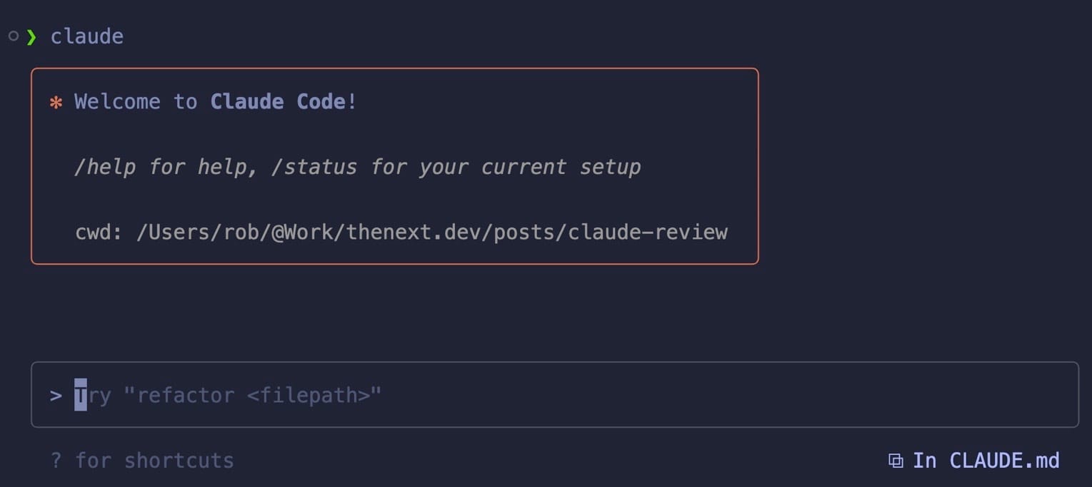 There's a single input box with Claude Code and some hints/tips for how to use it: