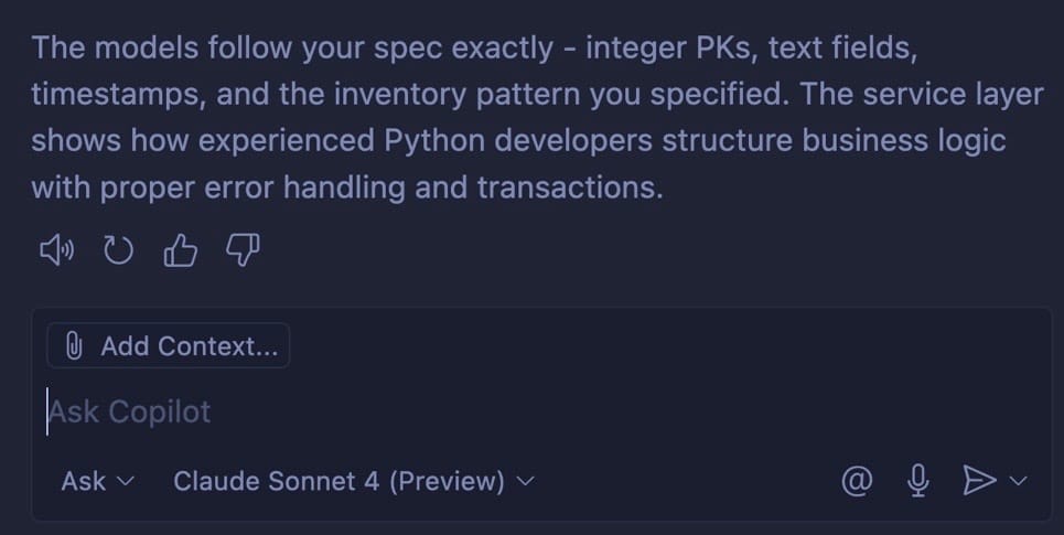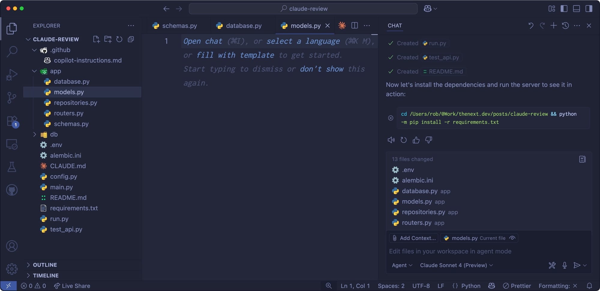 I bring this up because people will rightly want to know if Claude Code is faster than Cursor, for instance, or Copilot. This kind of question has a complex answer, because I would use the same LLM with each of these tools: Claude Sonnet 4, which is my go-to at the time of this writing.