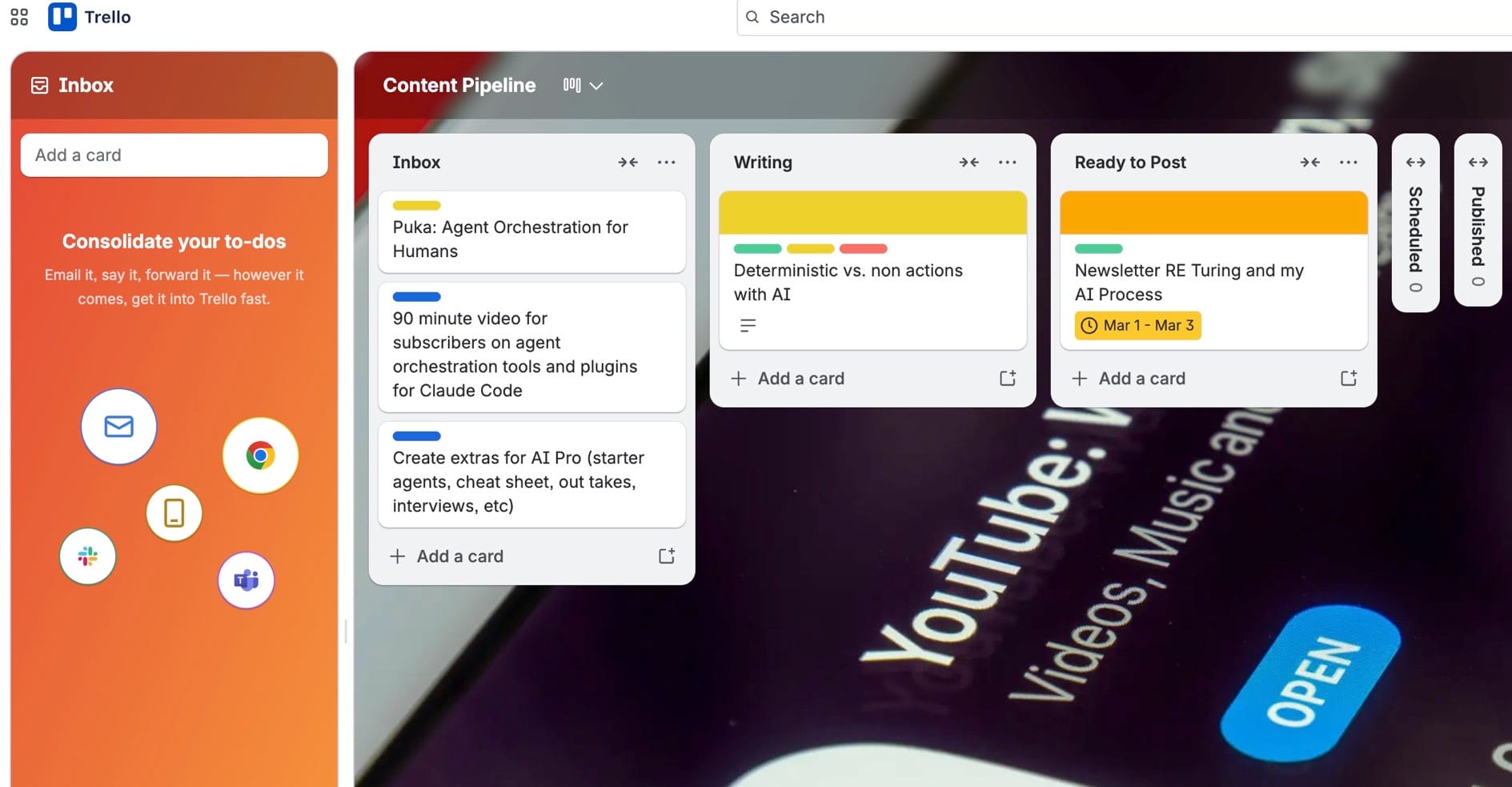 - Using Trello so I don't have to remember everything. Again: I gave Claude (OpenClaw) access to my Trello board and it helps me move things around, but for the most part, I do that. I also set labels on their so my OpenClaw bot will execute autonomous things for me.