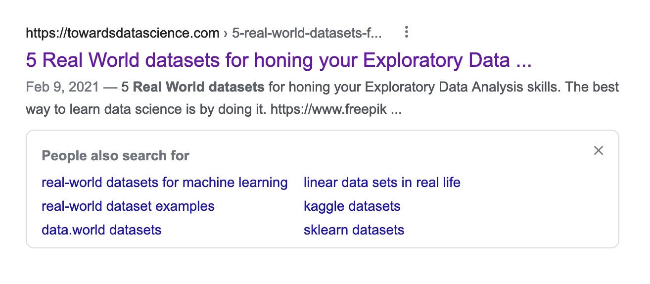 But here, let's try it together. Google "Real World Datasets." The results are pretty good: