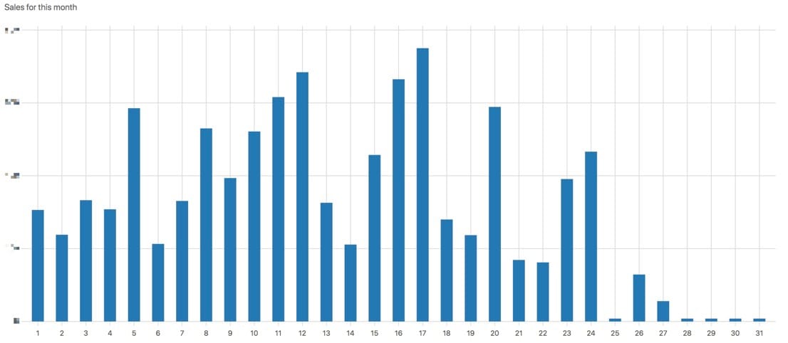 I have a reporting backend for my book/video business that has one chart which I stare at every day: the daily sales: