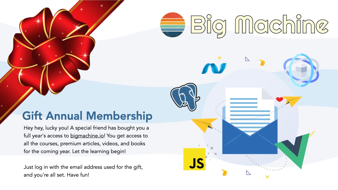 I've also spent the last few days wiring up a gift option. If you wanted to give someone the gift of learning (especially if they're a self-taught programmer) they might like this. A lot. Be sure the coupon 99IUHSKL is applied, if not, for the Black Friday discount.