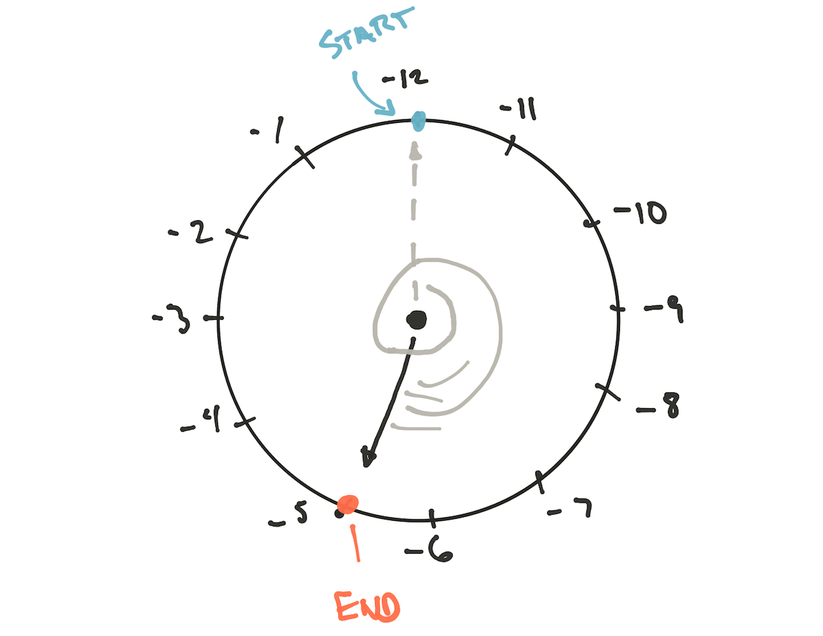 Why don't I number the clock starting with -1 and moving on to -2, etc? Because that would be moving backwards, continually decreasing until we hit -12, at which point we make a +12 jump, which isn't how modulo works.