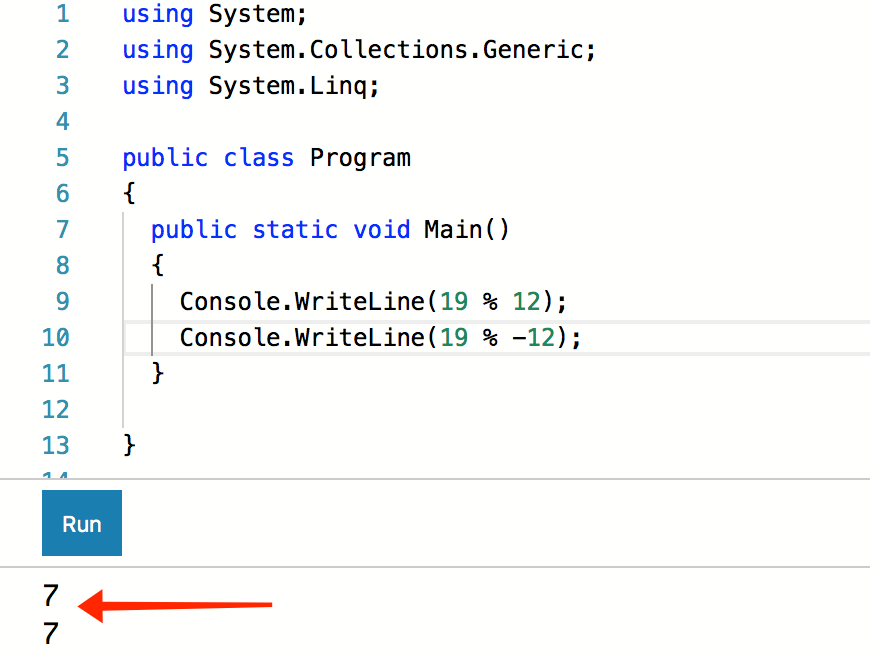 However, that is not at all what the % operator actually does in C#. The % operator is not the canonical modulus operator, it is the remainder operator.